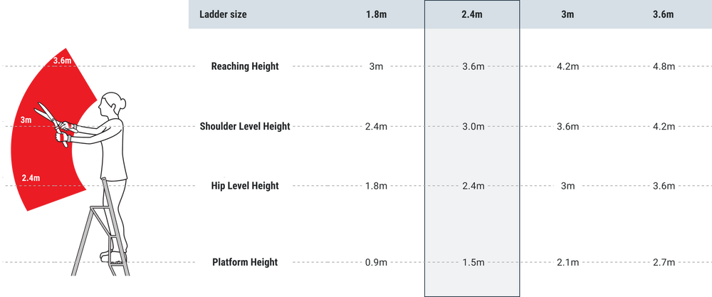 Wenn Sie zwischen 1,8 m und 2,4 m arbeiten, ist unsere 1,8 m lange Leiter genau richtig für Sie.